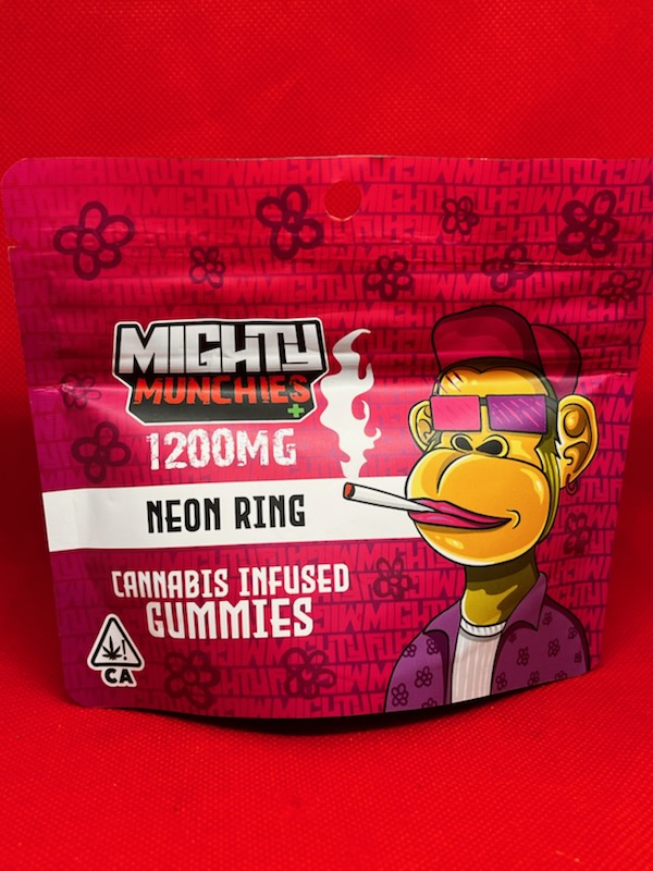 NEON, BLUEBERRY AND GREN APPLE rings 1200 mg thc per bag 100mg thc per gummies 12 gummies Neon rings and worms Peach rings Green apple rings Watermelon rings